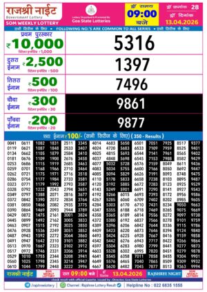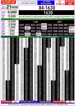 Goa Rajshree 50 7:30PM Result April 13 2026