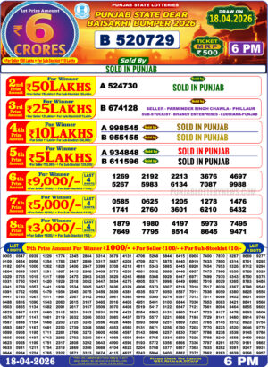 Punjab State Baisakhi Bumper Lottery Result April 18 2026