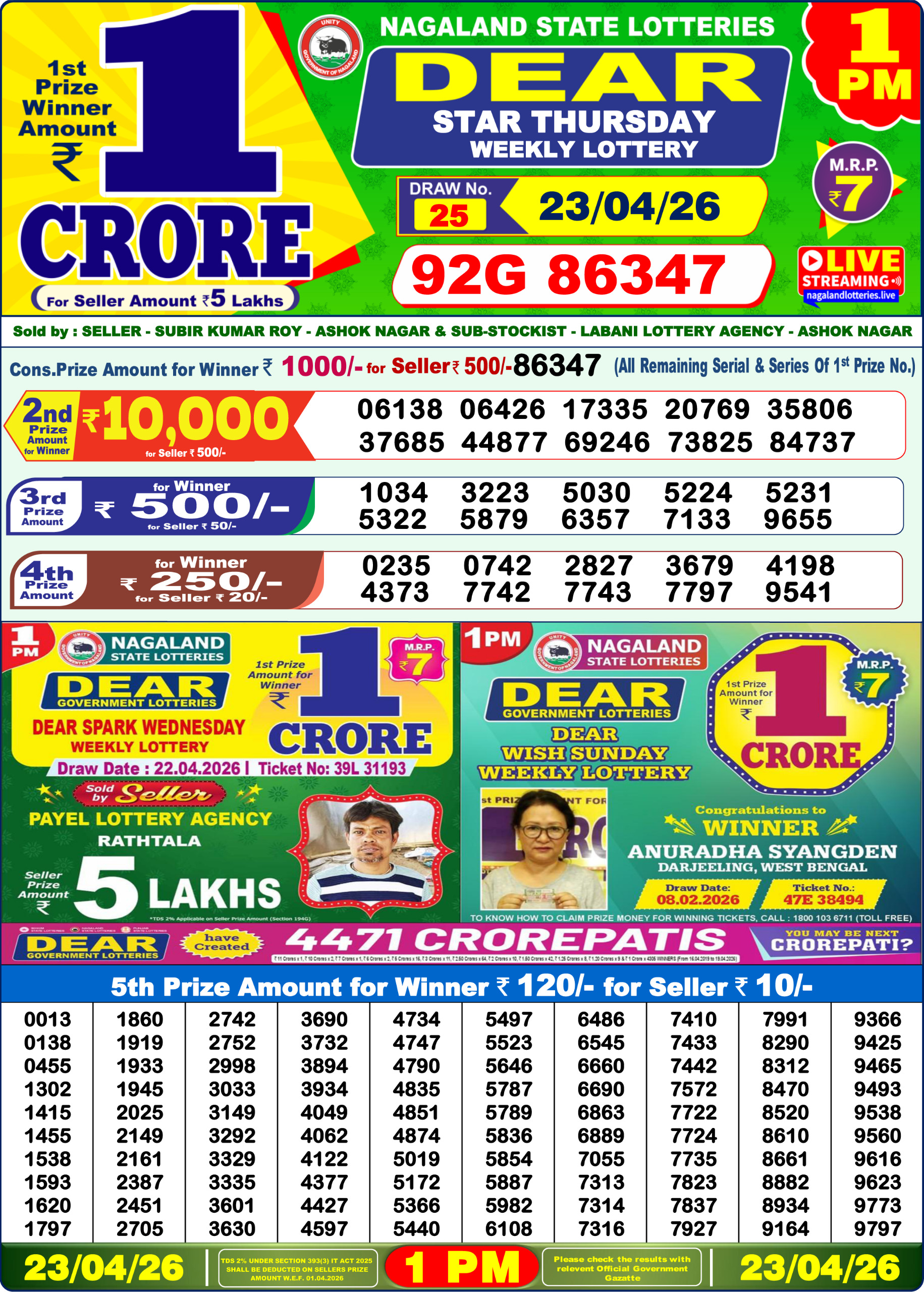 Dear Star Thursday Weekly Lottery Result 23 04 26