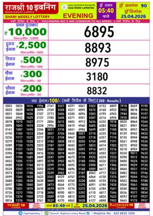 Rajshree 5:40 PM Goa State Rajshree 10 Evening Shani Weekly Lottery Result 25 04 26 Rajshree 10…