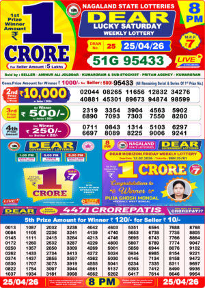 Dear 8 PM Nagaland Dear Lucky Saturday Weekly Lottery Result 25 04 26 Dear Lucky Saturday Weekly…
