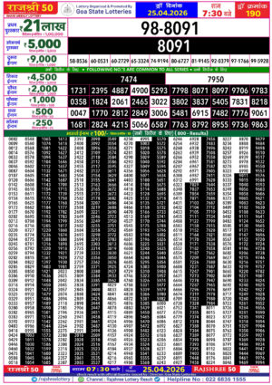 Rajshree 7:30 PM Goa State Rajshree 50 Shani Weekly Lottery Result 25 04 26 Rajshree 50 Shani…