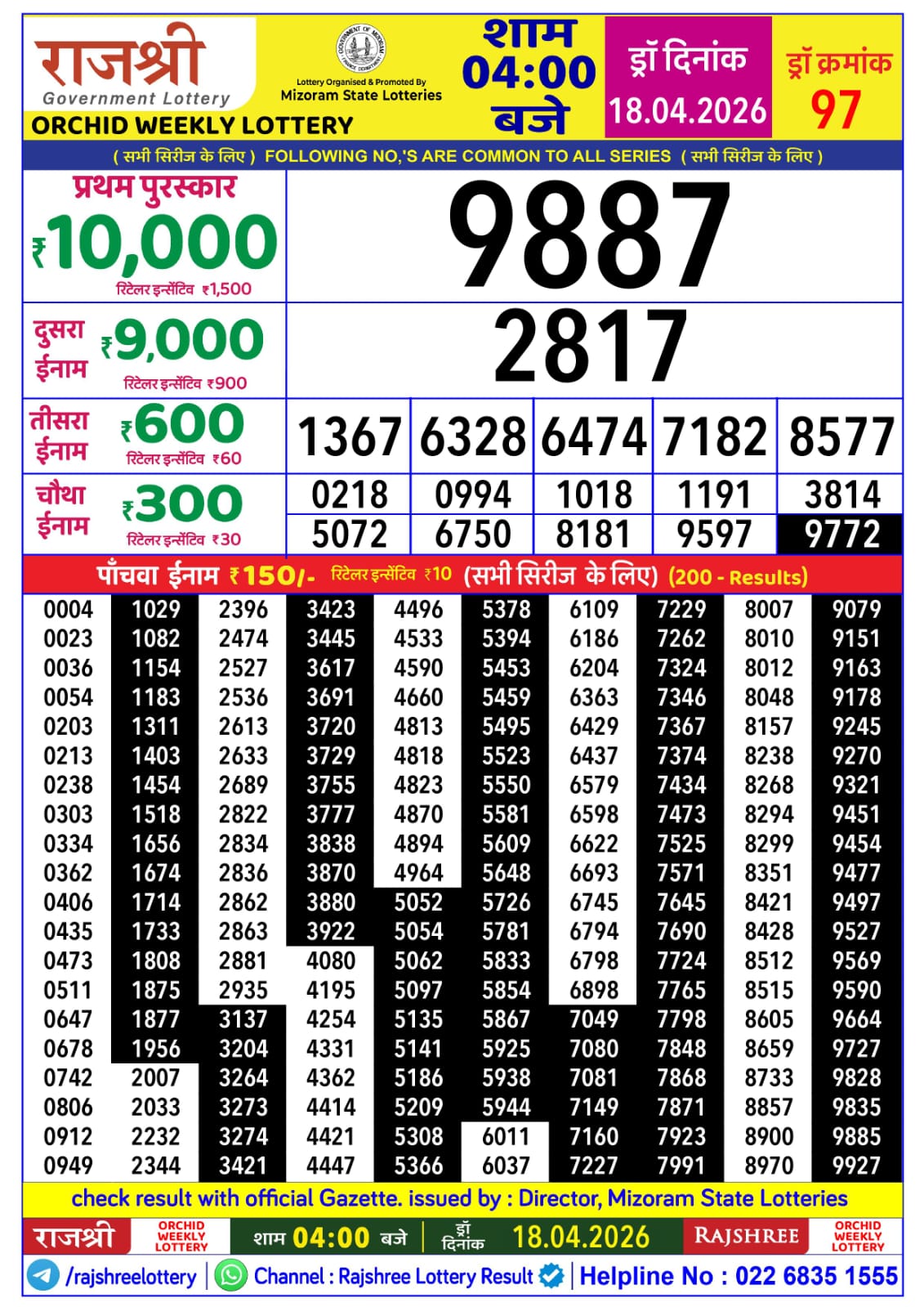 Mizoram Rajshree 4PM Result April 18 2026