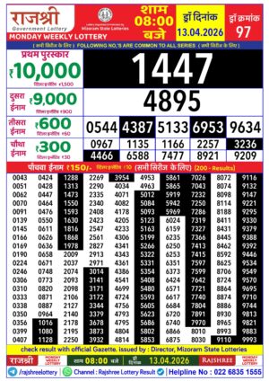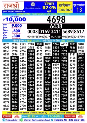 Mizoram Rajshree 4PM Result April 13 2026