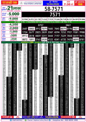 Goa Rajshree 50 7:30PM Result April 12 2026