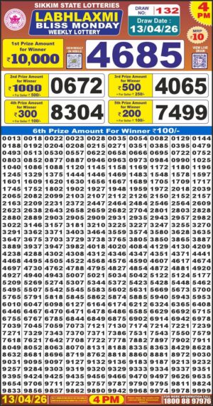 Sikkim Labh Laxmi 4PM Result April 13 2026